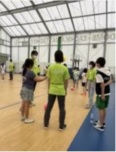 6月の全体会議(運動の時間も設けられています)