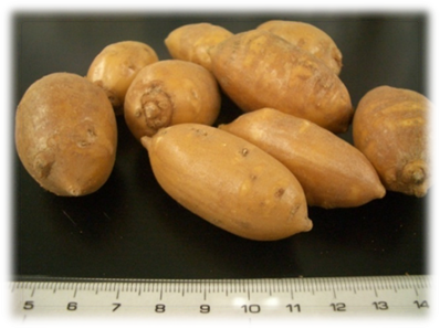 食用となる塊茎は、5~20gと大きさはさまざまですが、多きものだと40~50gというものもあります。