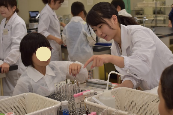 また、「アピオス」を身近なものとして感じてもらいながら、「食」を科学的に捉えることの面白さを学習してもらうという小学生を対象にしたイベントも開催しています。学生たちも参加してくれた小学生と一緒に科学の楽しさを学んでいます。