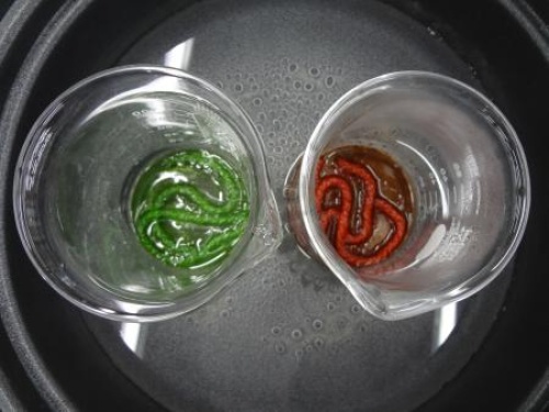 こちらの写真は、実際に毛糸を用いて色素だけを取り出したものです。