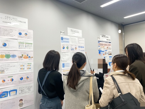 ポスター発表者は各自の研究成果をポスターにまとめ、校内の大教室や掲示板にて発表をしました。