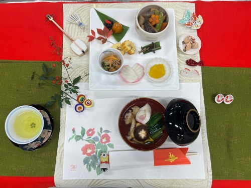 12月の実習では、おもてなし料理をテーマに一足早いお正月料理の調理実習を行いました。