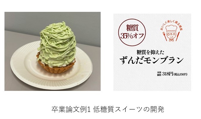 左のモンブランは、えだまめが低糖質であることに着目し、他の原材料も低糖質のものを使用しています。