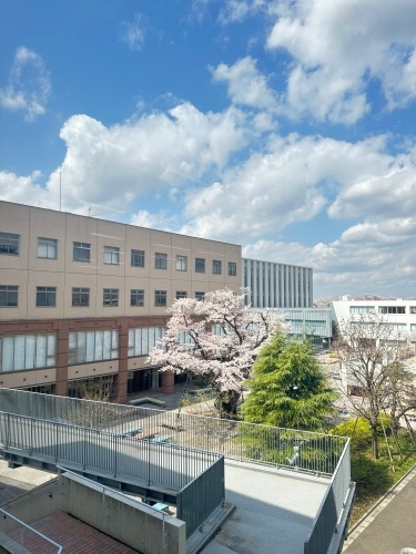 晴天に恵まれ、桜の花びらが舞い落ちる中、日野キャンパスでは4月3日(月)に2023年度入学式が