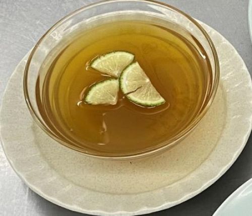 ジャスミン茶といえば飲料というイメージがありますが、実習では糸寒天を使用してゼリーにします。