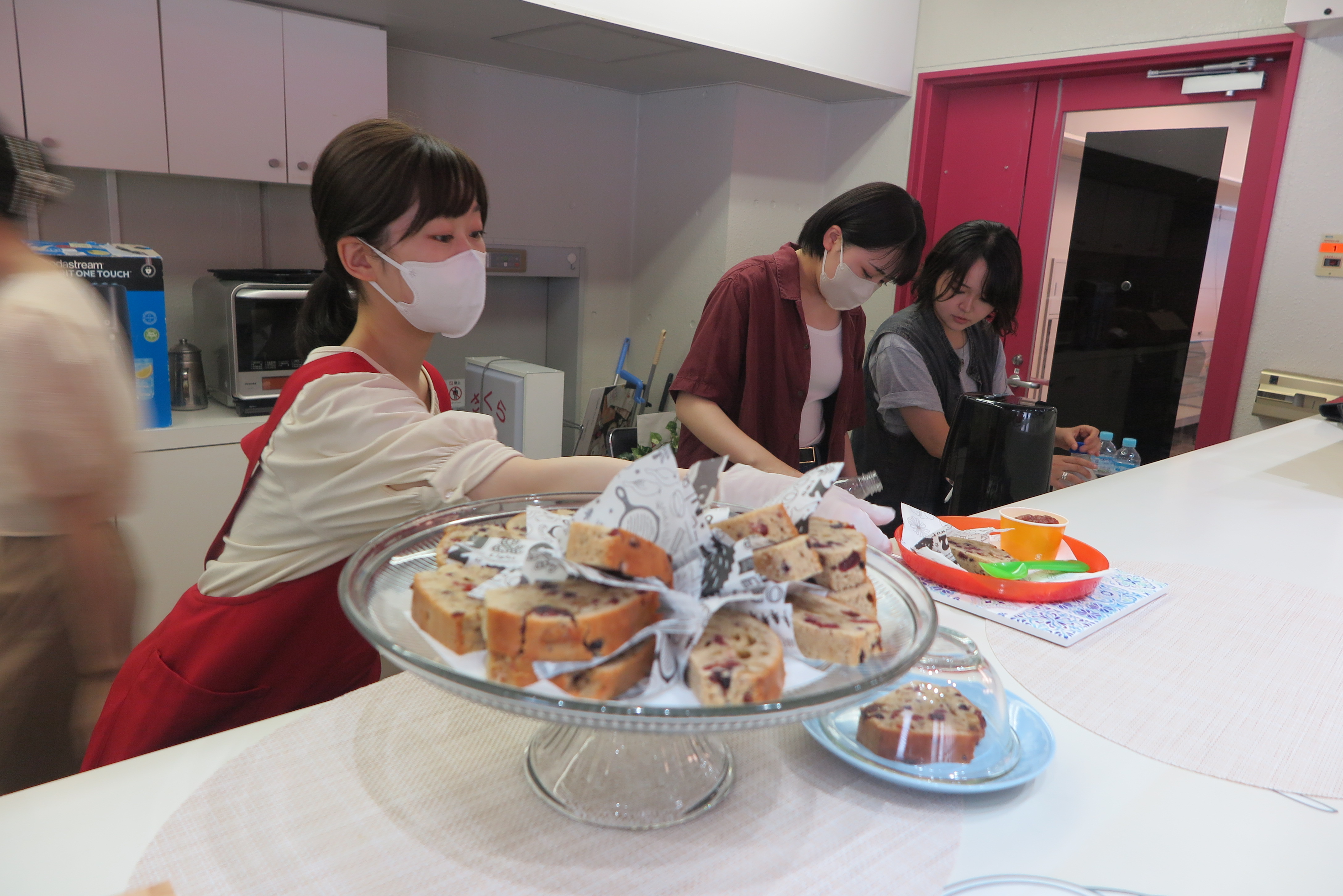 スパイスケーキは調理学第二研究室が作成してくれました。私のゼミ(調理学第一研究室)は、梅サイダーを提供させていただきました。