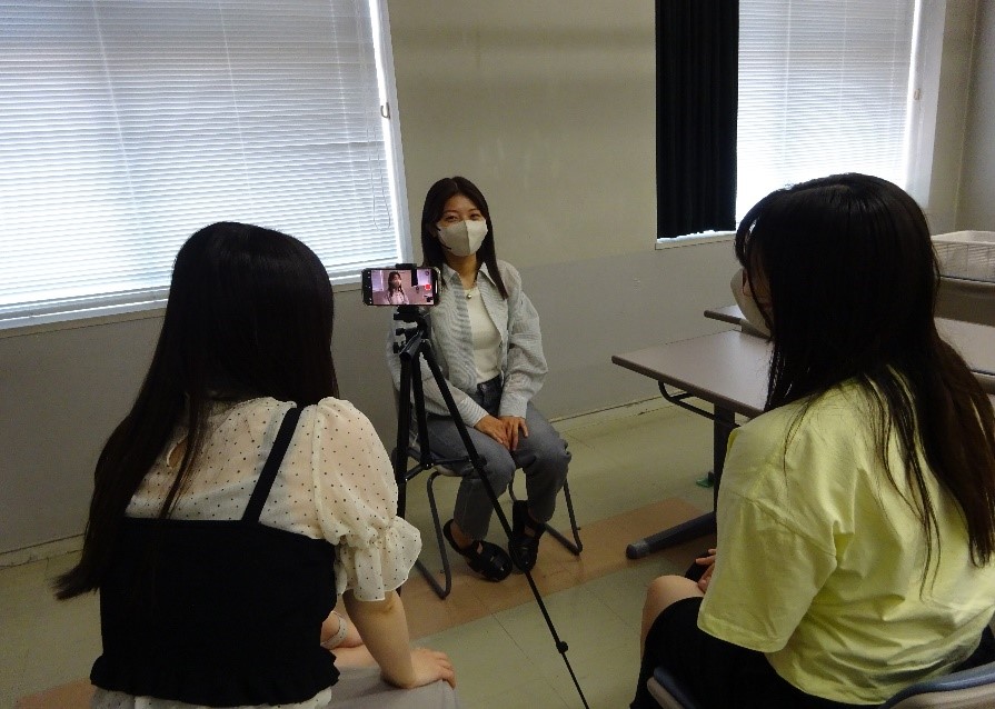 実際に学んだ方法で、インタビュー撮影をおこないました。