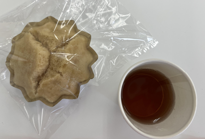 「特製黒糖蒸しパンの試食コーナー」では、体験コーナー参加者全員に、実際に給食実習室で調理した黒糖蒸しパンを紅茶と共に提供しました。