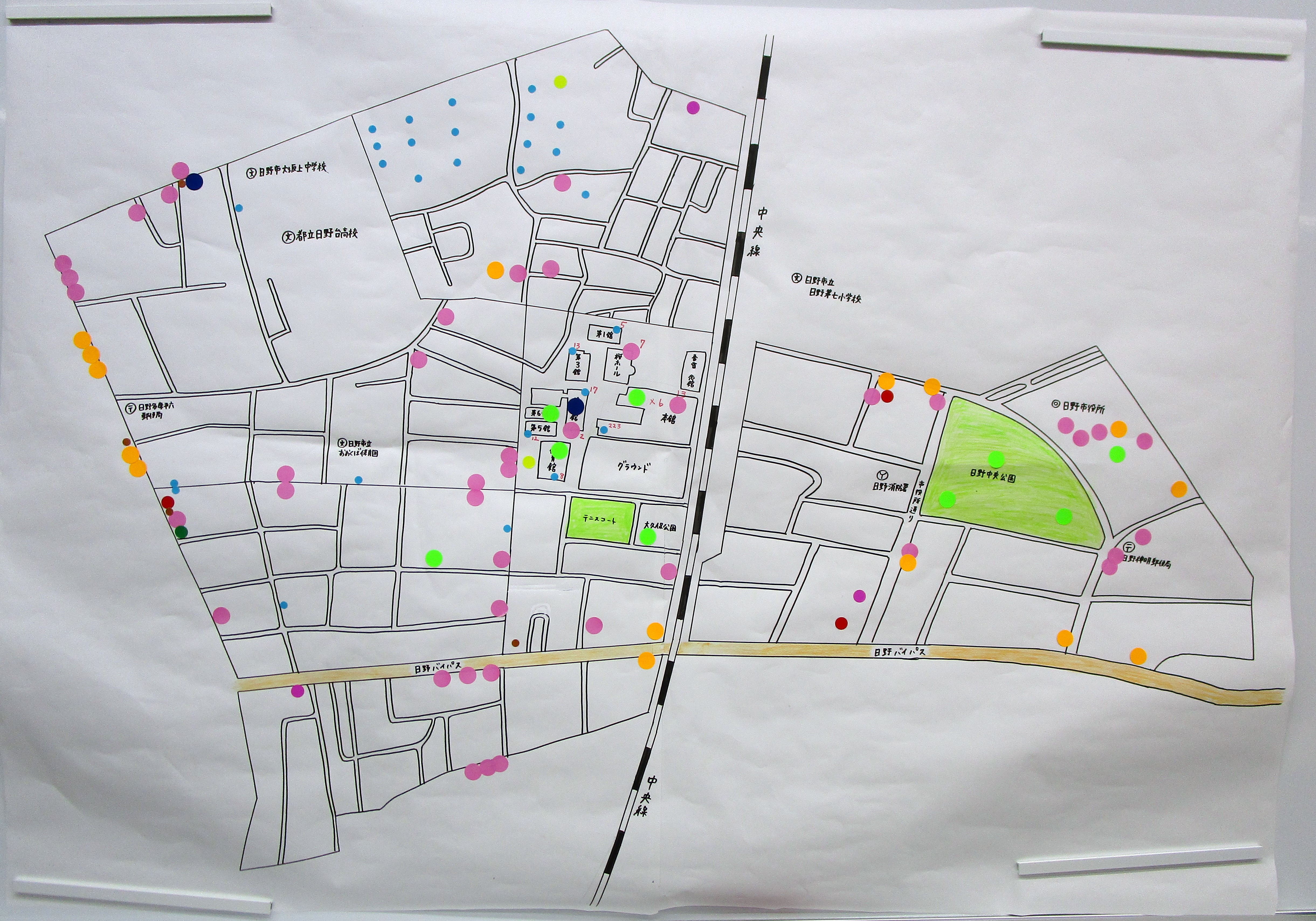 今回の実習では、4年間の学生生活を行う日野キャンパス周辺(校舎から半径2㎞範囲)の食環境調査を「踏査法」「観察法」で実習しました。