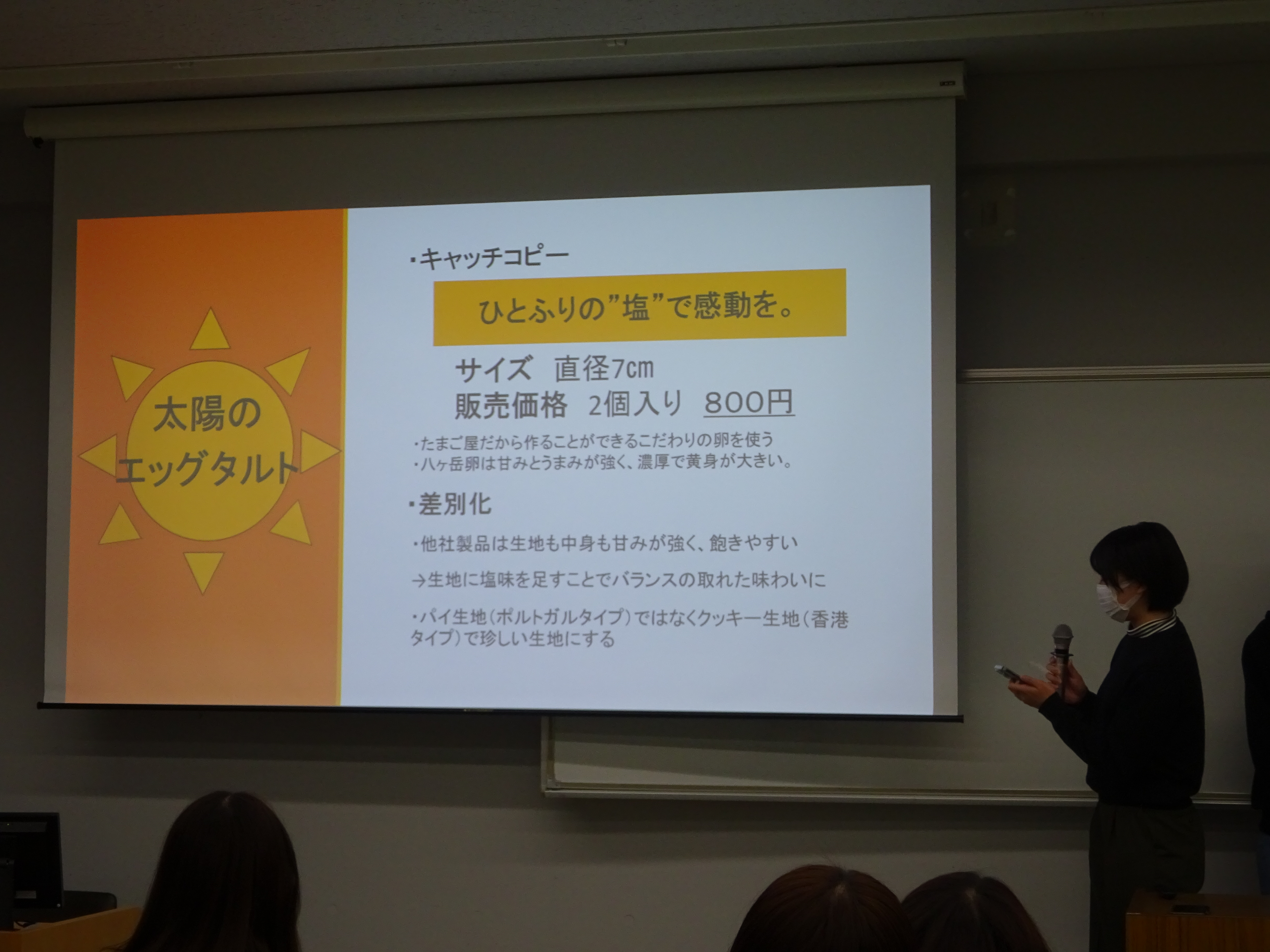 その名の通り、マーケティングを演習する授業ですが、食生活科学科ならではの演習授業となっています。
