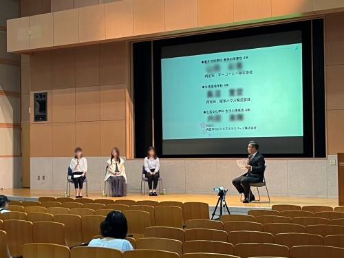 また、後半は就職活動を終えた本学の4年生が登壇し、パネルディスカッションを行いました。