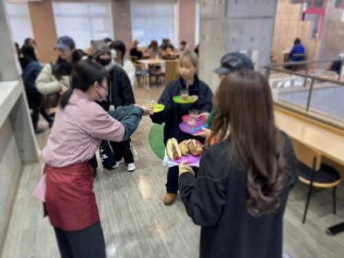 今回は、ココアスムージー・シフォンケーキ・ホットドックを限定20食ずつ無料で配布し、嗜好調査を実施しました。