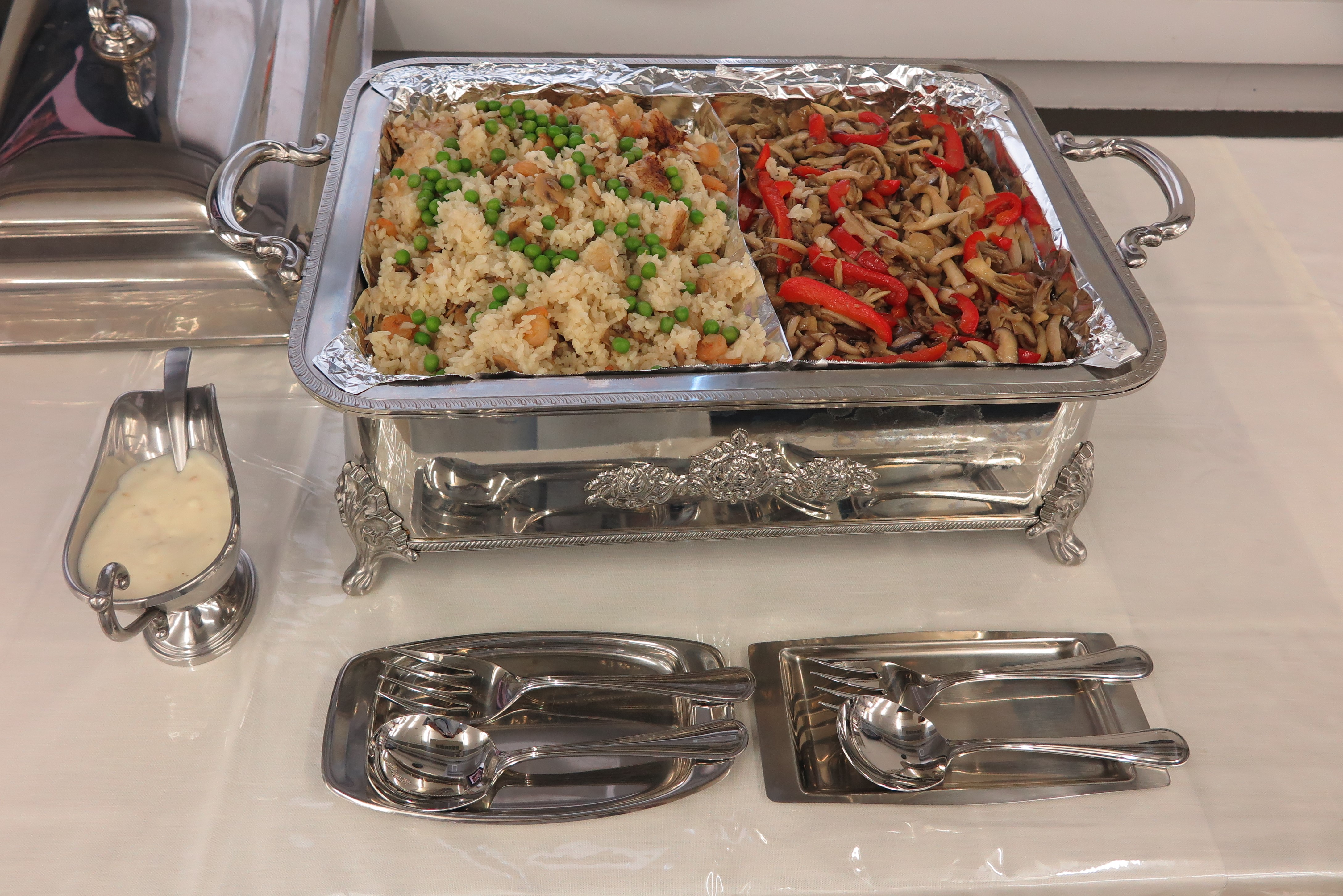 ■ 料理ができたら、立食用の容器(チューフィング)に盛り、料理テーブルをセッテイングします。
