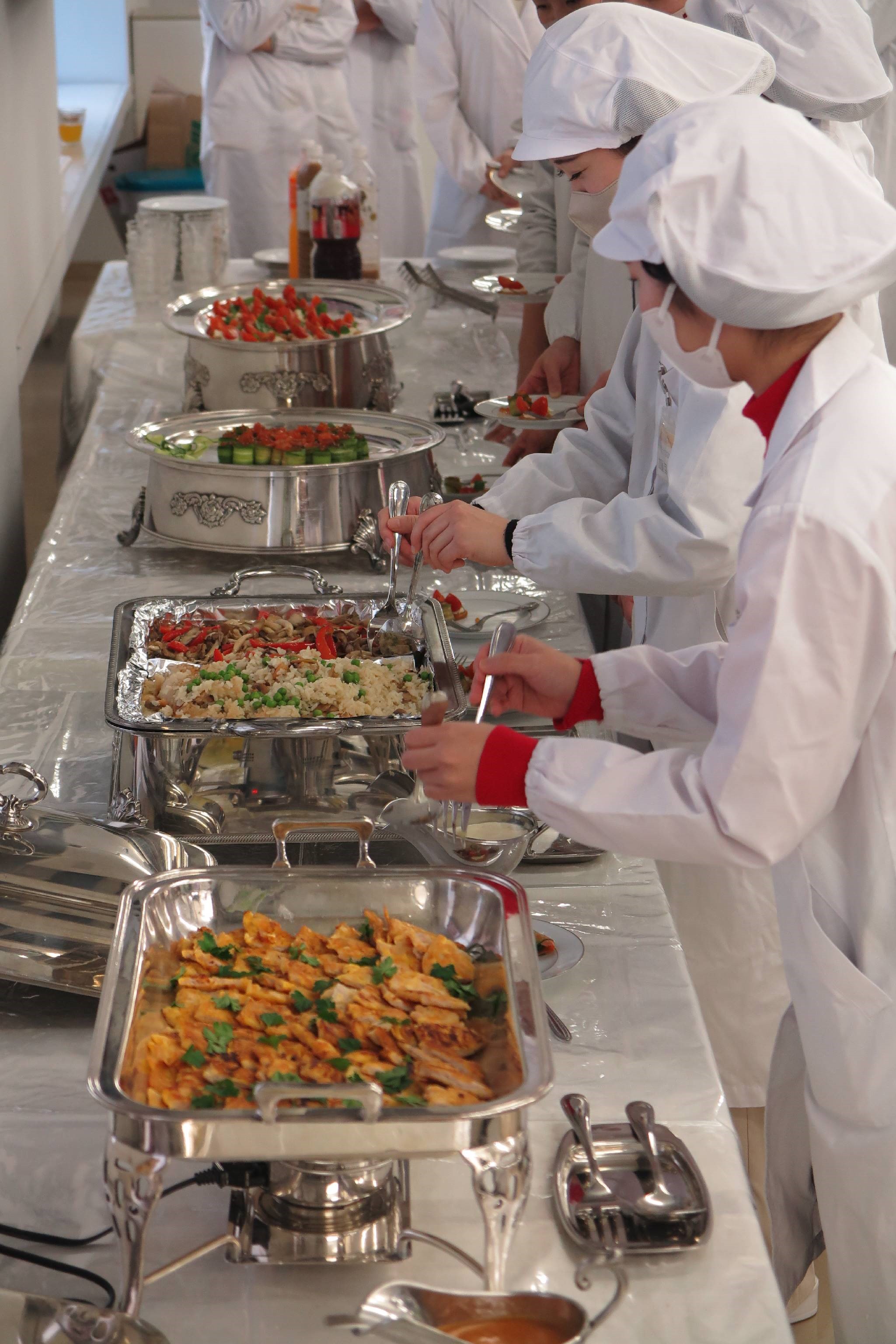 料理の盛り方、器具の使い方、サービス用のフォークやスプーンなどについても学びます。