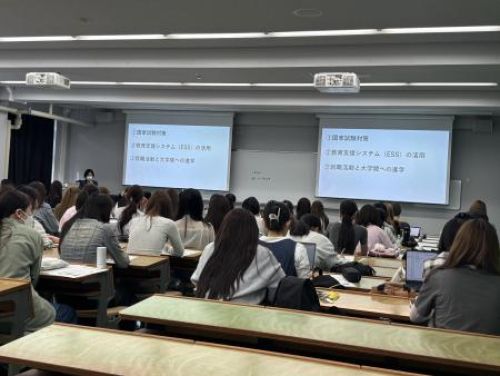 本学では国家試験対策として、ESSと呼ばれる管理栄養士国家試験対策の教育支援システムを活用しています。授業内で使用方法や機能についての説明を受け、1年生も使用ができる状態となりました。