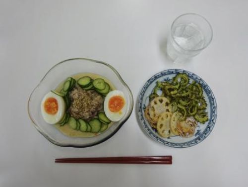 右上の写真は、学生が作成した「夏バテに良い」とされる食材を用いた献立です。