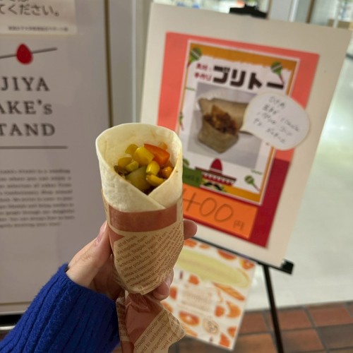 各研究室やサークルの模擬店が立ち並び、会場は多くの来場者で賑わいを見せていました。その中の1つである調理学第二研究室では、トルティーヤの生地で色々な具材を包んだ「ブリトー」を販売しました。