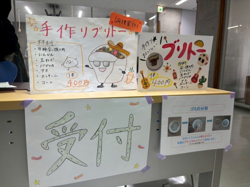 沢山の方においしいブリトーをお届けできるよう、学生達は常磐祭に向けて何度も試作を重ね、味や具材、見た目のバランスを工夫するとともに、模擬店の展示やレイアウト、調理・販売手順にも細やかな工夫をしていました。