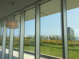 眺めの良いカフェテリアやスカイラウンジ、屋外庭園などがあり、日野キャンパスとはまた違った風景を