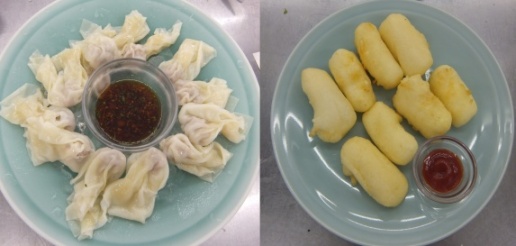 冷しワンタン(左)、牛乳の天ぷら(右)