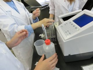 今回は管理栄養士専攻2年生の必修科目である「生化学実験」の様子をご紹介します。