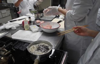 この実習では、講義で学んだ知識をもとに、実際に治療食を調整して理解を深めます。