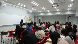 実習では6名1班で班編成し、「ライフステージ・ライフスタイル」、「スポーツ選手」、「災害時」など、テーマに沿って決められた対象者を班毎に振り分けます。それぞれ対象者の栄養指導方法を話し合い、紙芝居やパワーポイントなどの指導媒体を作成し発表しました。