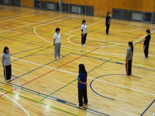 はじめに有酸素性運動(エアロビックダンス)の試験対策を行いました。