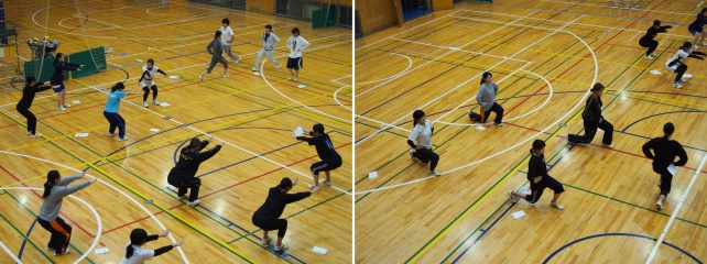 まずは講師の先生とともに課題運動の動きを確認しました。