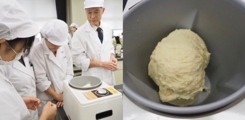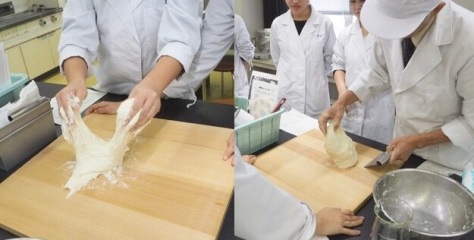 食品加工学実習では、加工食品を実際に作り食材の特性について学びます。
