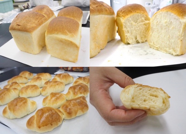 今回はパン(食パンとバターロール)を作り小麦粉の特性について学修しました。