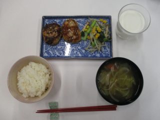 小学校の給食に良く出される「ハンバーグ」、「野菜ソテー」、「味噌汁」を3人班で1人1品ずつ作りました。