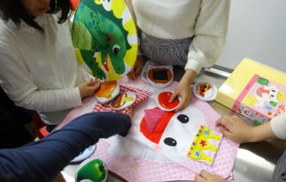 エプロンシアターとは、エプロンを舞台に見立てて、ポケットから人形を出したり、貼り付けたりしながら演じる、エプロンの人形劇のことをいいます。