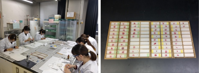 標本作製に使用する封入剤は乾くのに時間がかかるので、次回の実験まで乾燥させておきます。