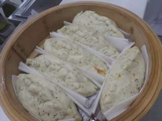 写真は出来立て・舞台裏!生地にバジルが練りこまれた「ピザ」の恐竜のしっぽです。