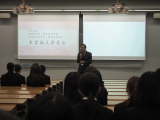 卒業論文は、これまでの学びを活かし、自ら研究計画を立て、その計画に従って調査・研究を行い、それらの結果について的確な考察ができる能力を身につけることを目標としています。発表会は、このように得られた研究成果を先生方や学生にわかりやすく伝えるという、プレゼンテーション能力を磨く機会でもあります。
