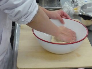 生地を30分ねかせると生地は全体的にしっとりし、とても伸びるようになります。