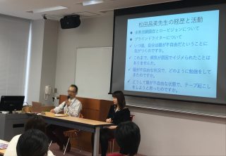 福祉制度を学ぶ回では、視覚障がいを持ちながらテープ起こしのお仕事(ブラインドライター)で活躍されている、松田昌美先生に講演していただきました。