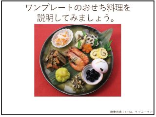 みなさんは目が見えにくい方に、このおせち料理をどのように説明しますか?