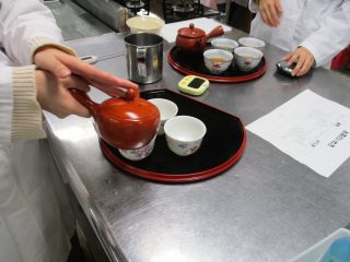 私たちの生活に身近な緑茶とほうじ茶の風味や味の違いを知ることを目的とし、家庭でも使用頻度が減った急須を使ったお茶の入れ方を授業の中で行いました。