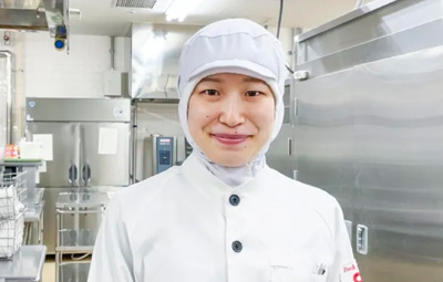給食委託会社の管理栄養士として病院に配属となり間もなく3年、仕事も覚え、リーダーとして周囲に配慮できるようになったのは、大学の学園祭実行委員でさまざまな人と関わった経験があるからだと思います。委託会社の管理栄養士は調理に携われることも魅力です。闘病中の患者様にとって食事は数少ない楽しみの一つ。これからも経験を重ね、自分の献立を患者様に提供することが目標です。