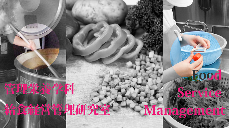 給食経営管理研究室は、健康な成人期の食事や学校給食の献立を作成し、安全安心な給食を提供するための研究を行っています。栄養管理はもちろん、喫食者が満足する食事提供のための知識や技術を学びます。1年生で、給食けえっ管理の知識や食j計画の演習を、2年生で、大量調理を経験し、3年生は、校外で実習を行います。系統立てて学ぶことによって、専門的知識や技術を確実に習得していきます。卒論では、卒業後、管理栄養士の仕事に役立つようなテーマを選んで研究します。