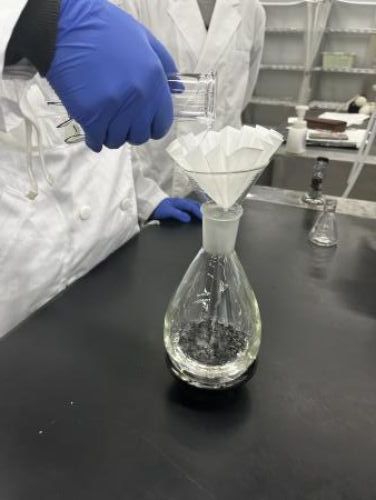 次に、空の重さを測定した三角フラスコに濃縮した液体試料を溶解して移し、再び機械を使って濃縮します。最終的にカラカラになった三角フラスコの重さから、先に測った空の三角フラスコの重さを引くことで、どれくらいの量の試料が得られたのかを求めます。