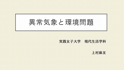 上村さんは「プロジェクト演習a(環境・エネルギー)」で「異常気象と環境問題」について調査・検討を行いました。