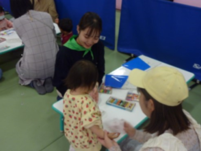 児童館を担当した学生達は、各ブースの準備や手伝い、子どもたちと一緒に製作活動を行いました。乳児から児童までと様々な子どもたちが参加してくれ、学生達は丁寧に言葉掛けをしながら子どもたちが活動を楽しめるよう援助やサポートを行っていました。