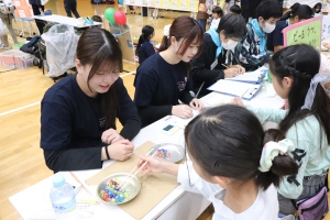 日野市の小学校、保育園、児童館でボランティアとして活動している学生も多く、これまでに出会った子どもや職員さんとこどもまつりで再会したり、普段ボランティアで活動している場所の職員さんとの交流を深めたり、学生がさまざまな場所でつながりを広げている様子も垣間見ることができました。大学の中での学びだけでなく、このような実践的な活動が学生の成長につながっていくことを期待しています。