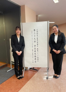 「全国保育士養成協議会関東ブロック協議会 第39回学生研究発表会」が2月27日に開催されました。関東地区から25団体が参加する中、幼児保育専攻4年生のOさんとSさんが、本学を代表して卒業研究の成果を発表しました。