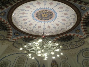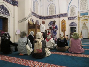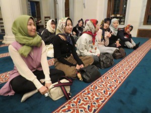 沢山のお話を伺って、イスラム教の文明が今の私たちにとって身近な算用数字やカメラなど多くのものを生み出していることを知り、身近なものでさえもまだまだ知らないことがあり、より様々なものへの興味が膨らみました!また、日本人は徐々に自己中心的になっているという話が印象的で、文化、伝統、人をより大切にする姿勢が大切だと感じました。建物の内装は全てトルコのものを実際に使っているそうで、どこを見てもとても綺麗でしたがモスクの外観、内装には圧巻されました。運良くアザーンを聴くことができ、礼拝時も同席し、イスラム教の文化を肌で感じることができました。今回の見学の間でも多くの信徒さんが握手を交わし、お話をしている姿をみてイスラム教の方々の絆の深さを実感しました。またその姿から世界にイスラム教が広がっている理由を目で見て実感することができ、とても有意義な時間を過ごすことができました!(福原)