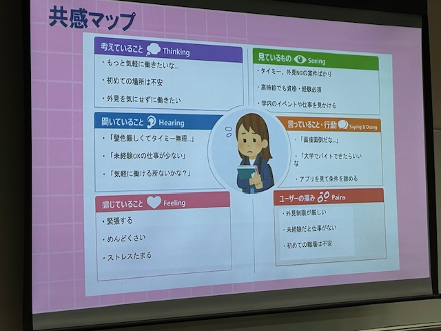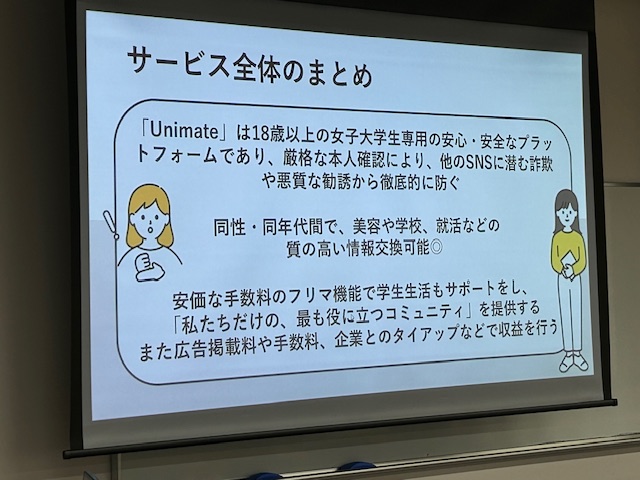 そして最終日は各チームでコラボし新しいビジネスのアイデアをまとめゲストで来ていただいたビジネスパーソン(富士通様)にプレゼンしました。若い方たちの新たなアイデアや発想に対して好印象を持たれ高い評価をいただきました。