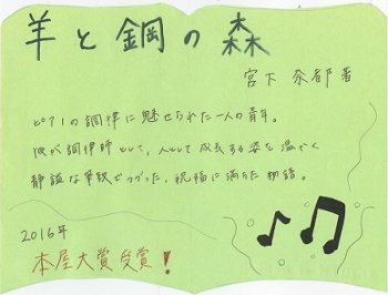 食生活科学科2年 N.I. | 羊と鋼の森 / 宮下奈都著 |